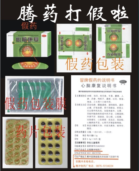 冒用我廠名義及商標(biāo)生產(chǎn)的“心腦康復(fù)片”